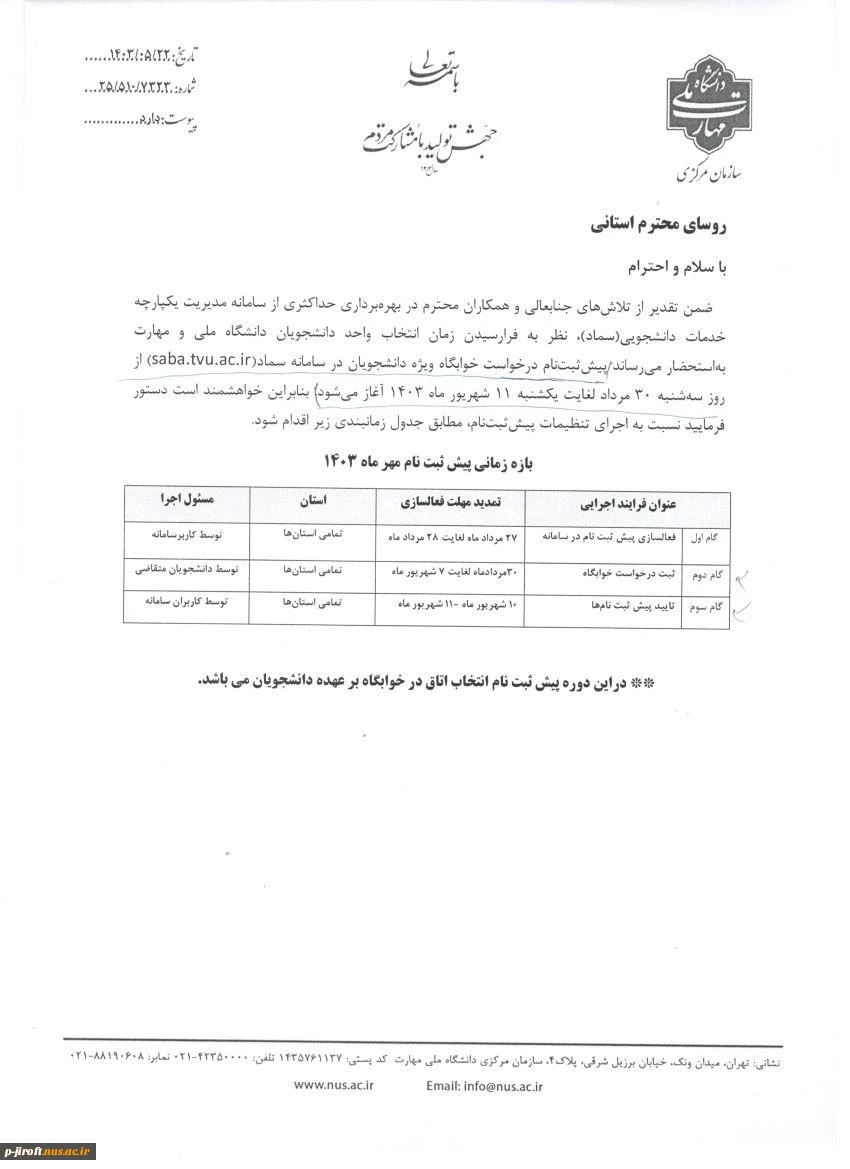 اطلاعیه پیش ثبتنام خوابگاه 2